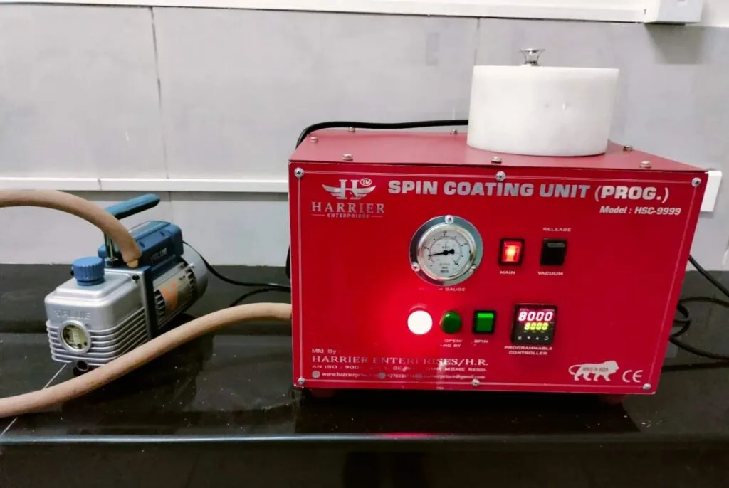 A Programmable Spin Coating Unit represents a sophisticated tool for precise and customizable thin film deposition processes in research and development environments. Its programmable operation allows researchers and engineers to create and store multiple coating recipes, each tailored to specific substrates, coatings, and desired thicknesses. Variable speed control ensures precise adjustment of spin speed, accommodating diverse coating requirements ranging from delicate films to thicker layers. The unit’s adjustable spin time feature further enhances control over coating uniformity and thickness, optimizing experimental outcomes. Real-time monitoring via a digital display provides instant feedback on spin parameters, facilitating accurate adjustments during operation. Safety is prioritized with features such as lid interlock and emergency stop, ensuring secure operation and protecting users from potential hazards. Whether used in semiconductor fabrication, optical coatings, or material science research, the Programmable Spin Coating Unit offers reliability, flexibility, and precise control over thin film deposition processes, making it an indispensable asset in advanced laboratories and production facilities alike.